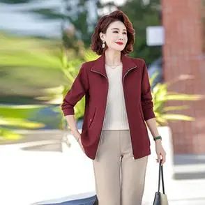 中年妈妈秋装外套2023新款中老年人女装洋气上衣短款纯色休闲夹克