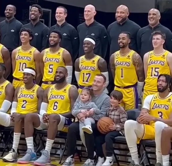 湖人全队大合影出炉詹皇领衔佩总c位抱球施罗德大笑浓眉强颜欢笑