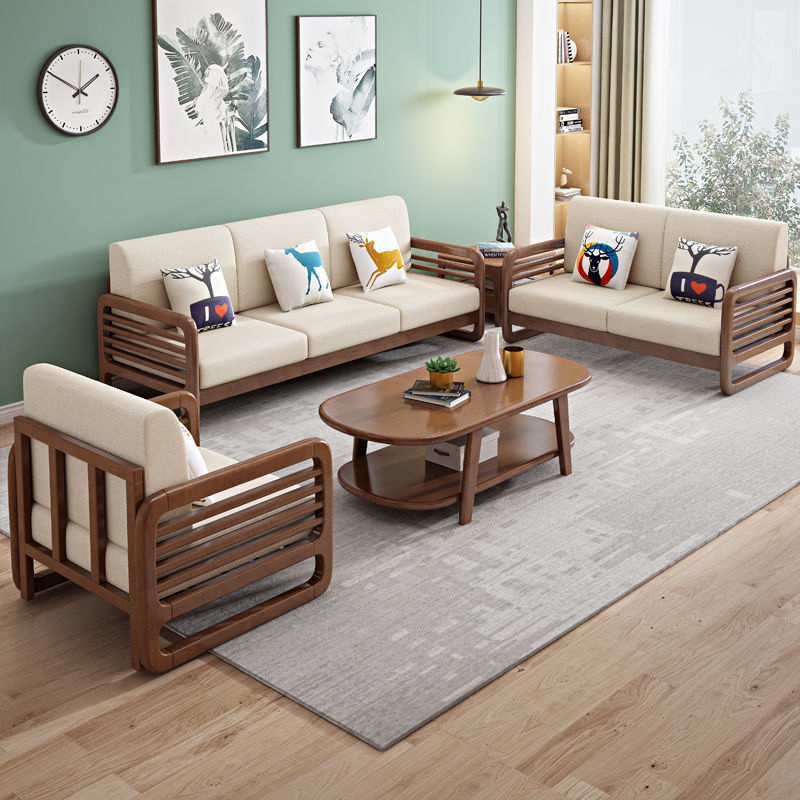 北欧冬夏两用实木沙发组合现代简约小户型客厅家具办公室民宿公寓