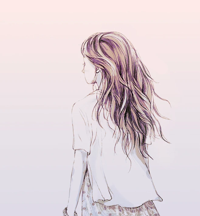 求手绘长发女孩背影图片 类似于这样的 谢谢