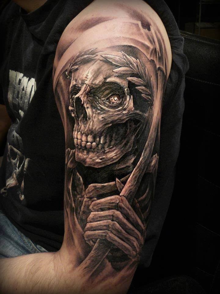 大臂黑灰写实死神._纹身吧社区 - 纹身大咖