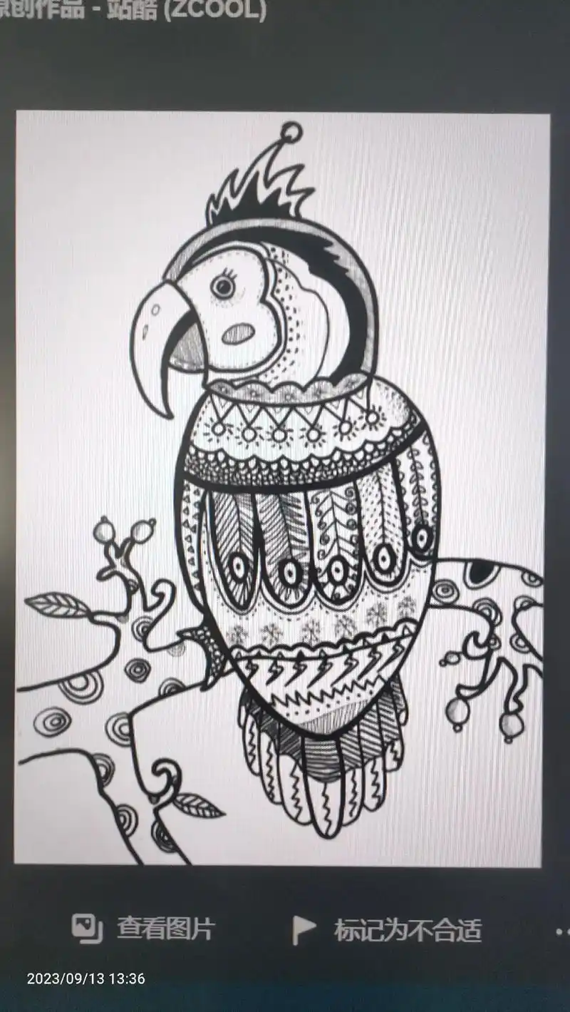 鹦鹉00儿童画线描黑白稿 鹦鹉00儿童画线描| 步骤图在后面 只画