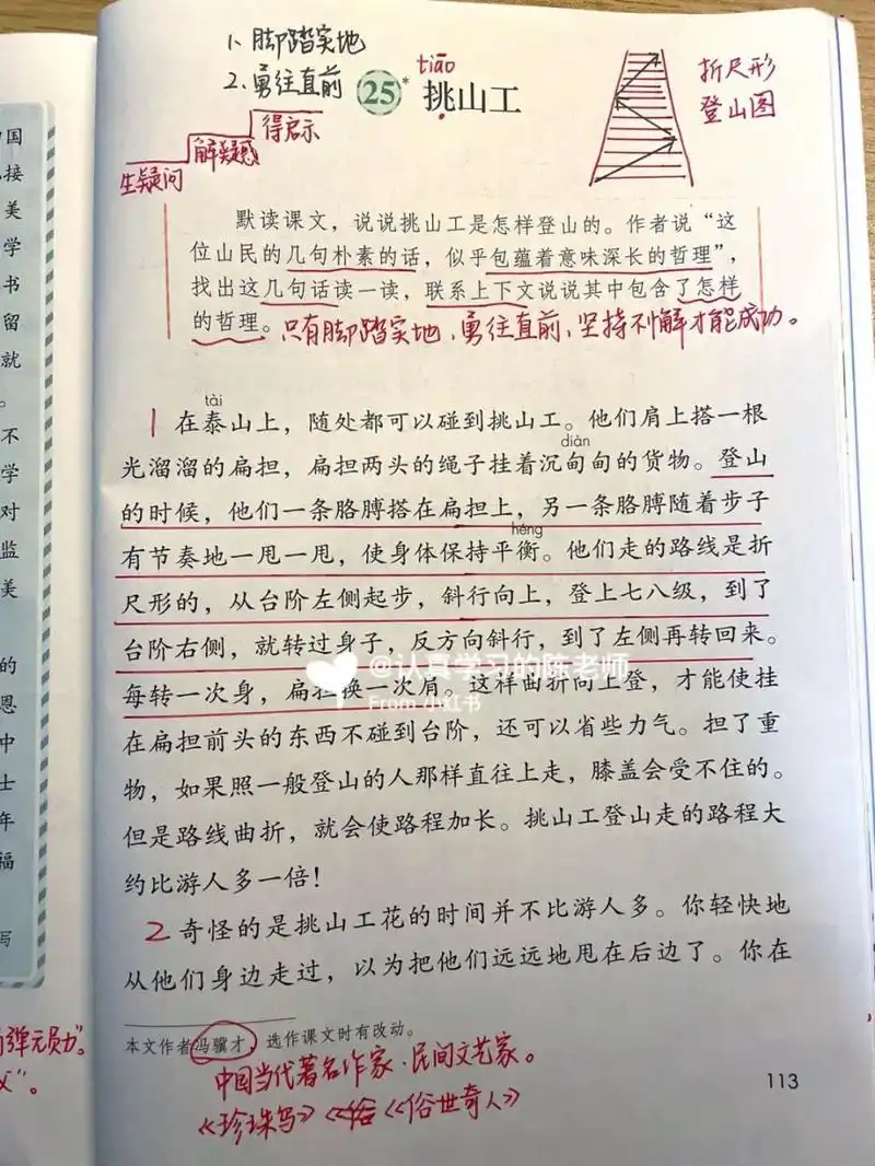 课文笔记|四下第25课《挑山工》 更新啦~ #小学语文# #四年级语文