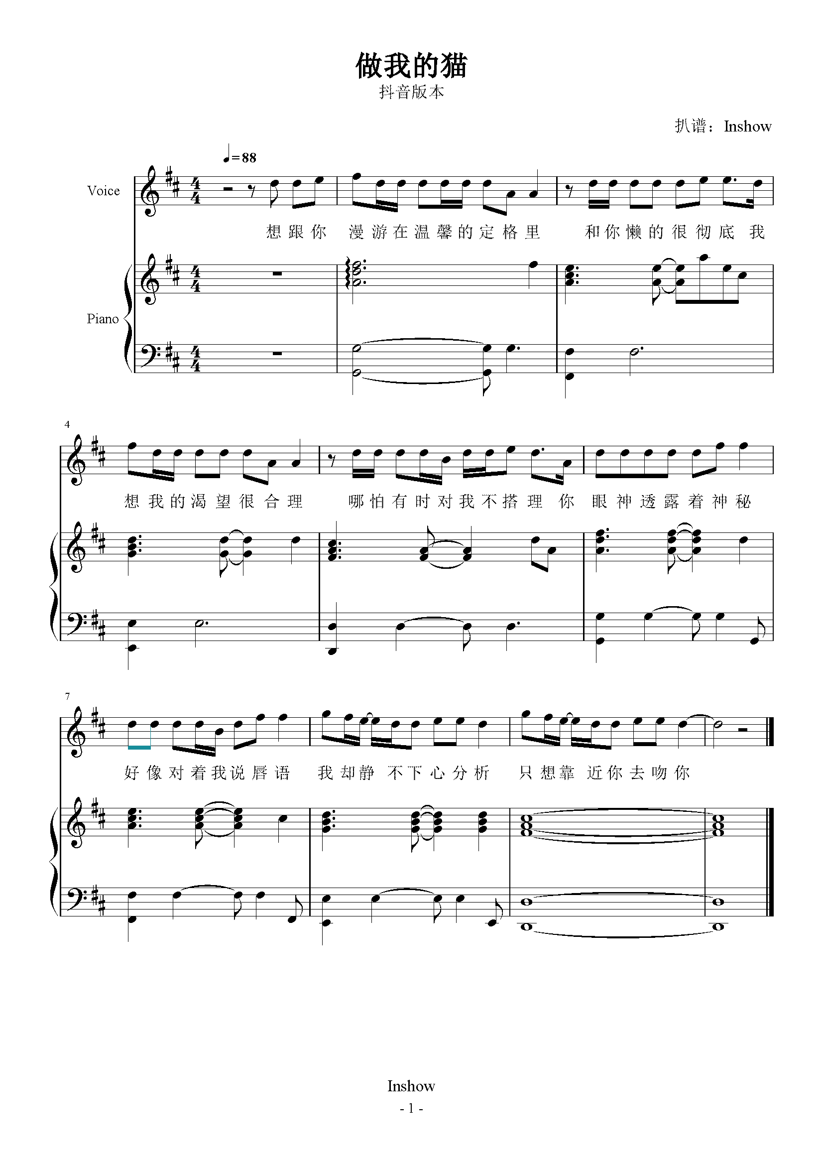 做我的猫简谱