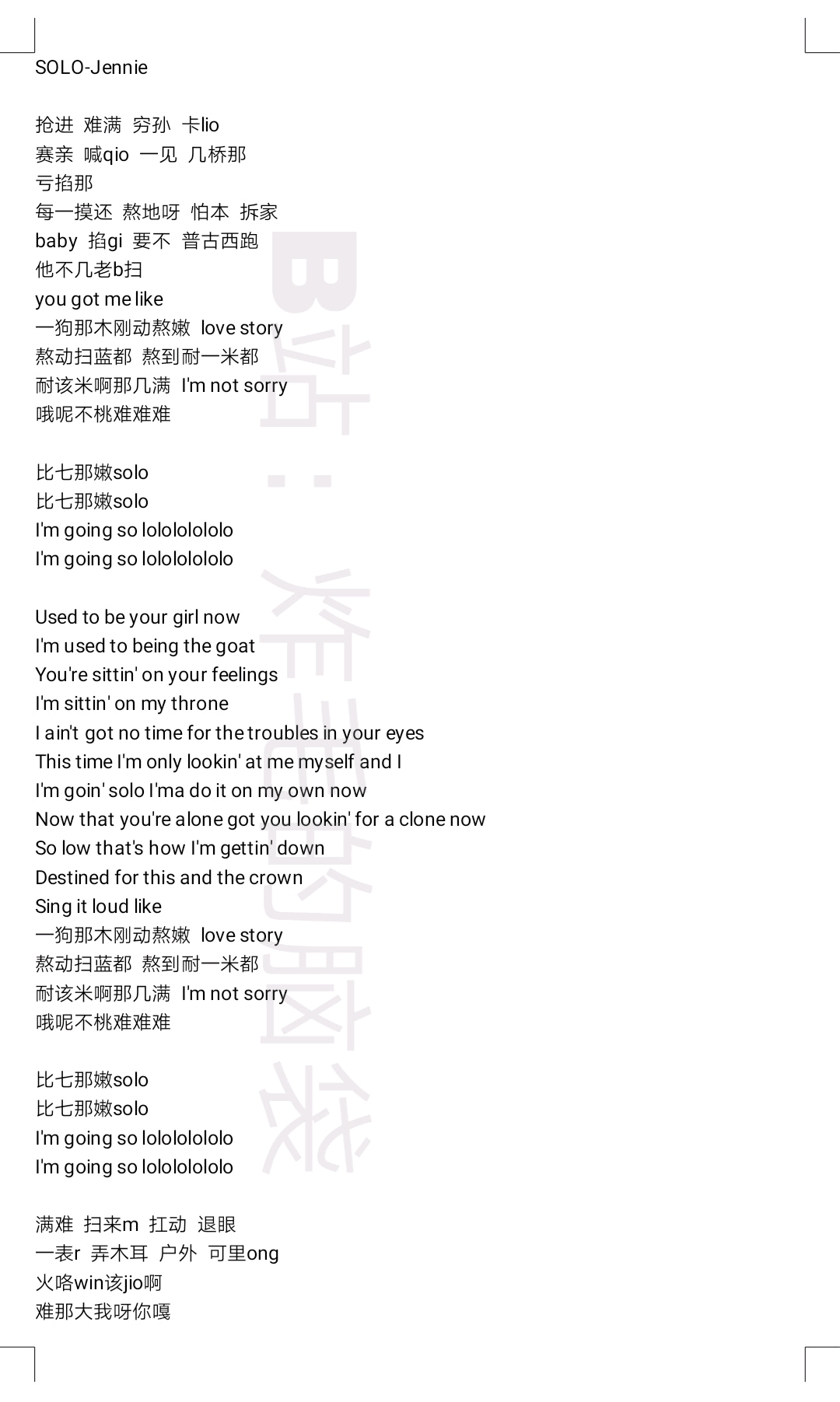solojennie音译歌词