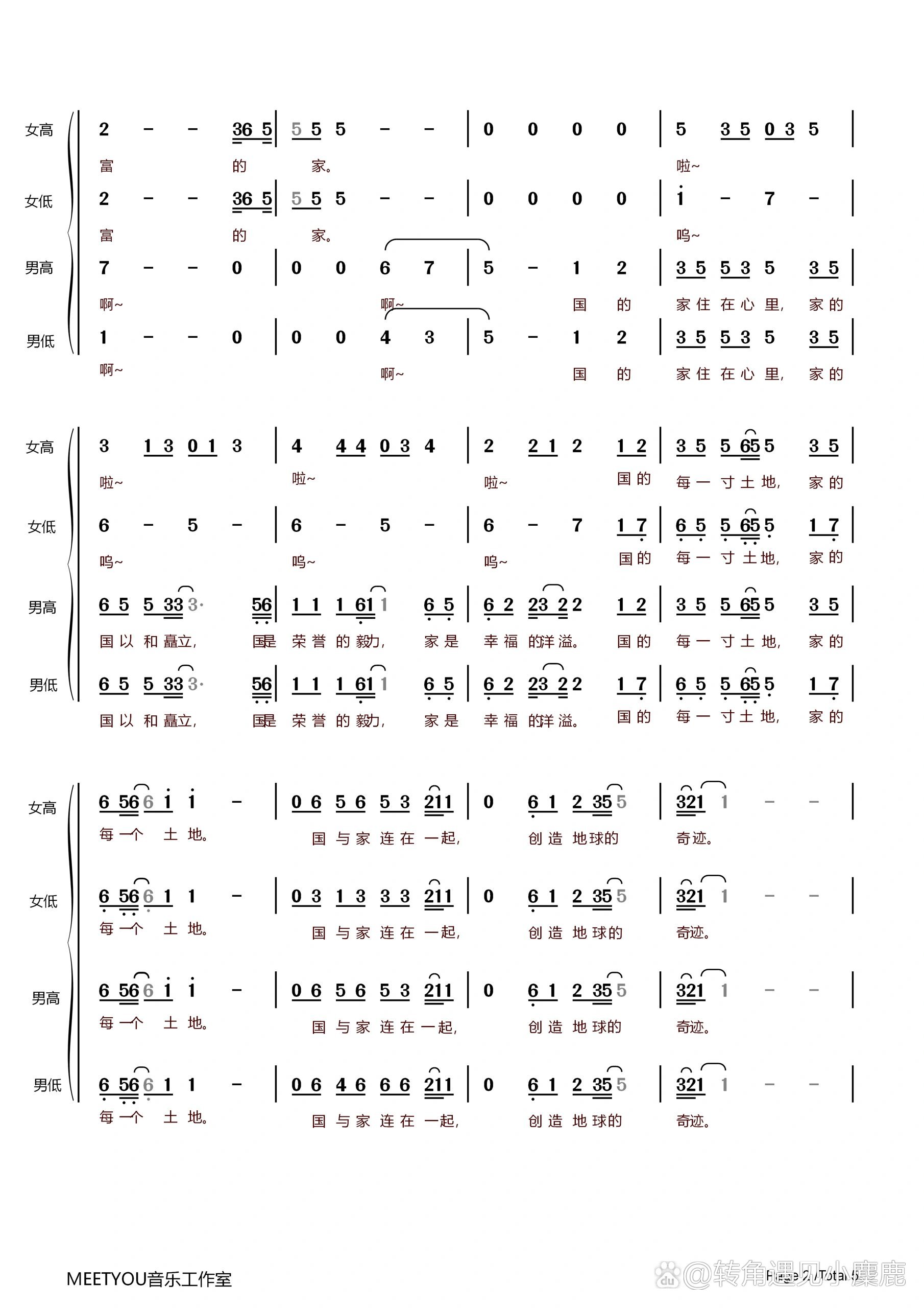 免费分享| 《国家》四声部合唱谱💕 最近六一儿童节,七一建党节相继