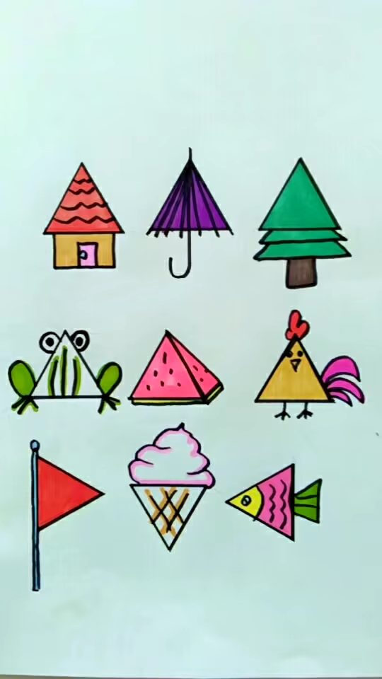 三角形的联想食品篇简笔画.#画个简笔画 三角形食品简笔画,爱 - 抖音