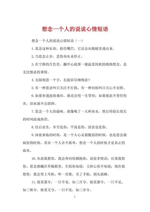 想念一个人的说说心情短语
