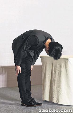 穿着西装的男人鞠躬并致歉照片