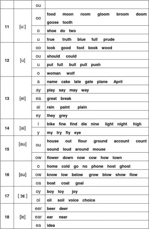 英语中48个音标对应的字母组合