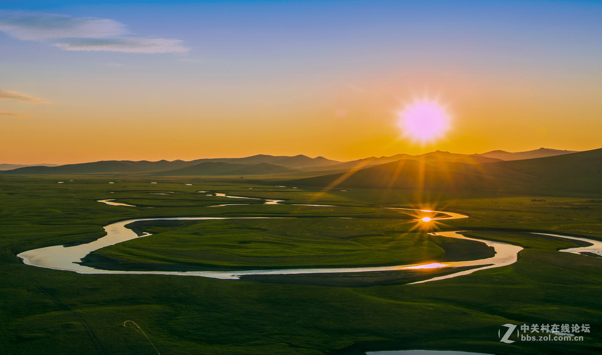旭日东升,辽阔的草原沐浴在朝阳的光辉中.#想和你一起看日出# - 抖音