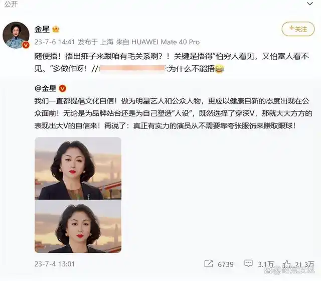 金星怼热巴捂胸行为:怕穷人看见,又怕富人看不见!事后拒不道歉