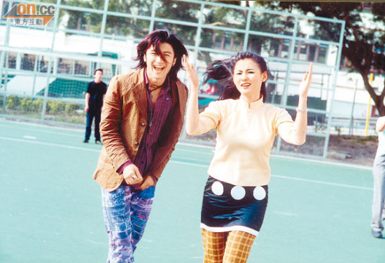 21岁的张柏芝(右)和小她3个月的谢霆锋,首次搭档拍电影《老夫子2001》