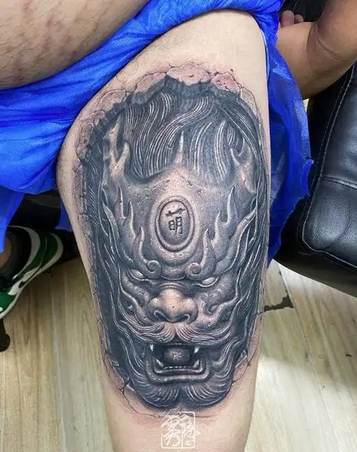 石雕福狮纹身图片