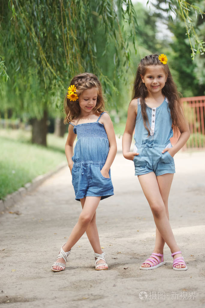 两个小女孩在夏日公园的照片