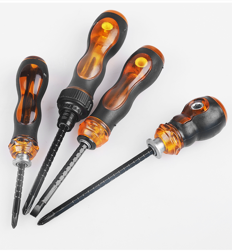 两用螺丝刀伸缩加硬十字小一字改锥双头带磁梅花螺丝批起子工具红色