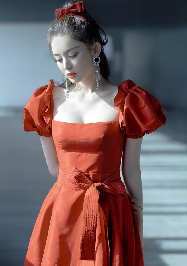 原创28岁古力娜扎逆袭18岁,穿超短橘红裙亮丽妩媚,优雅成青春美少女