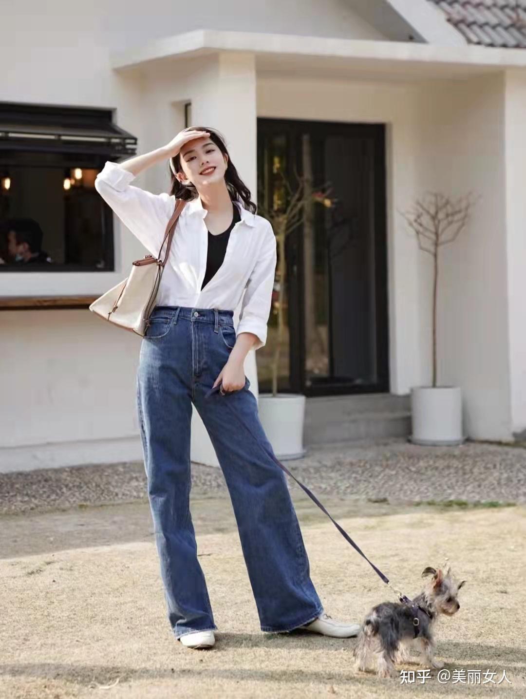 牛仔阔腿裤配什么上衣好看 - 知乎