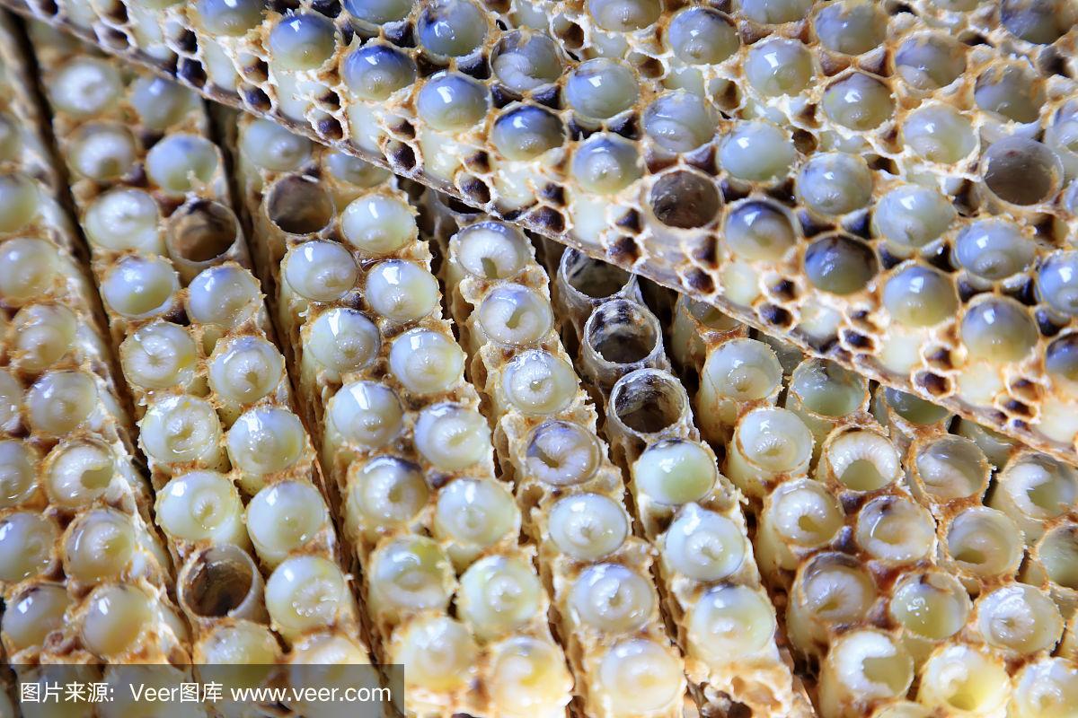 巢中的蜜蜂幼虫,特写照片