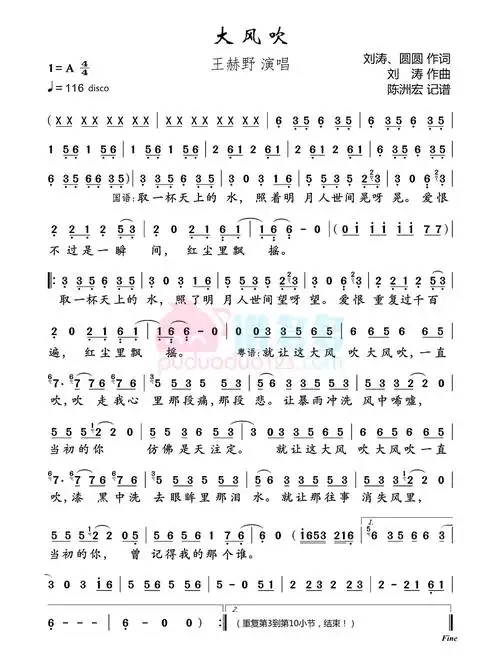 曲谱分享 《大风吹》9292929292
