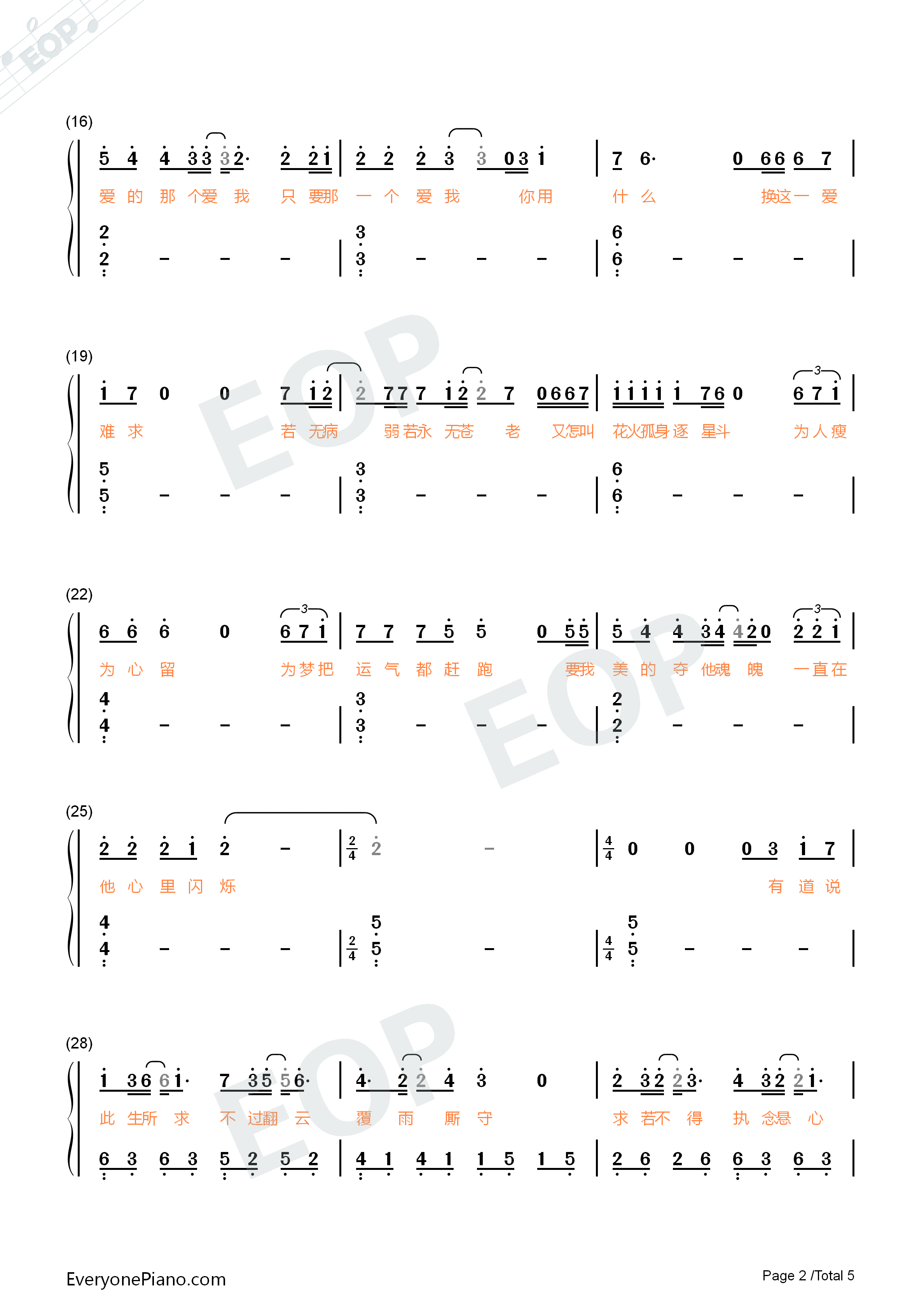 一爱难求扶摇片尾曲双手简谱预览2
