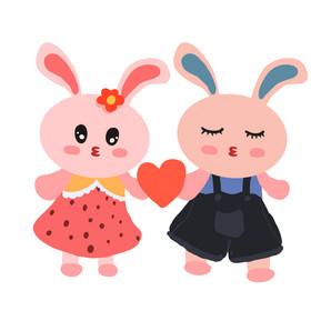 手拉手可爱情侣兔子