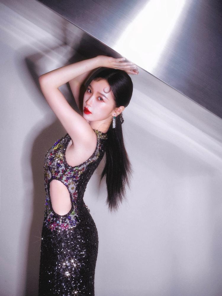 虞书欣 一袭银色礼服,自带贵气感,勾勒出玲珑有致的曲线,波光粼粼的