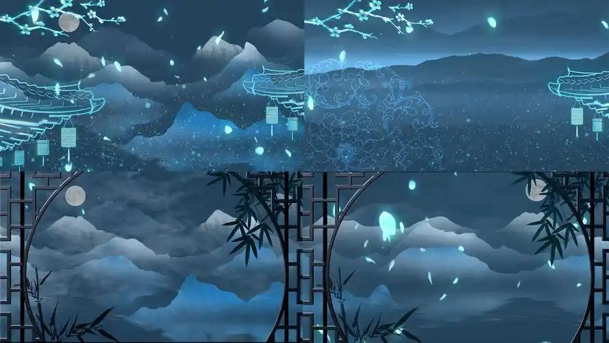 4k古风扇子古典舞背景视频led舞台古典国潮背景