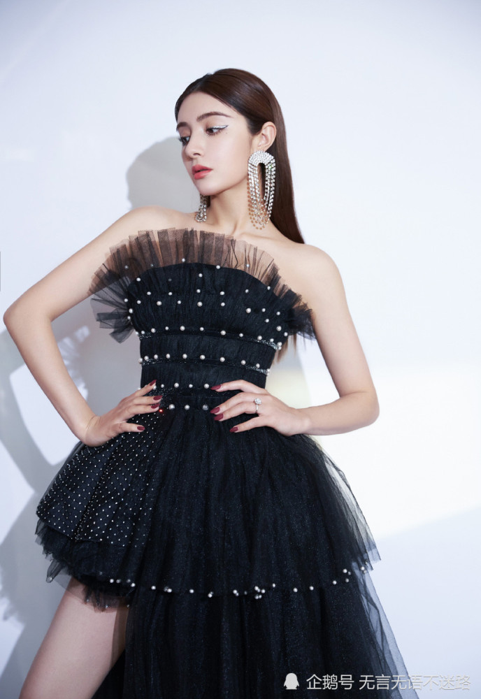 麦迪娜高贵典雅的黑色长裙与夜色交相辉映颦笑间尽显仪态万方