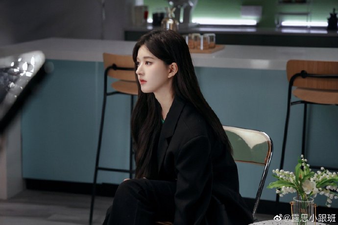 赵露思黑西装侧颜照##赵露思黑西装绿色内搭