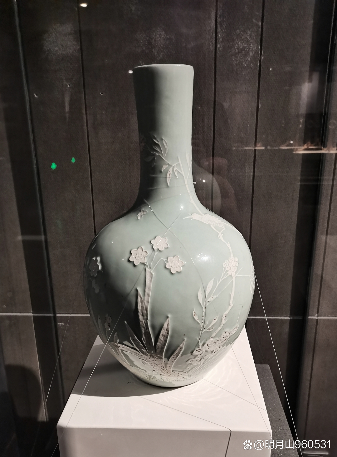 清中期豆青釉堆白长颈瓶 咸阳古渡遗址博物馆