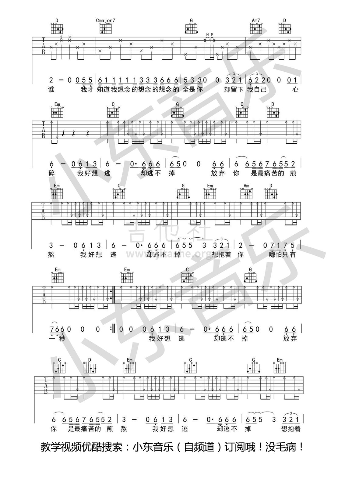 逃爱完整版吉他谱