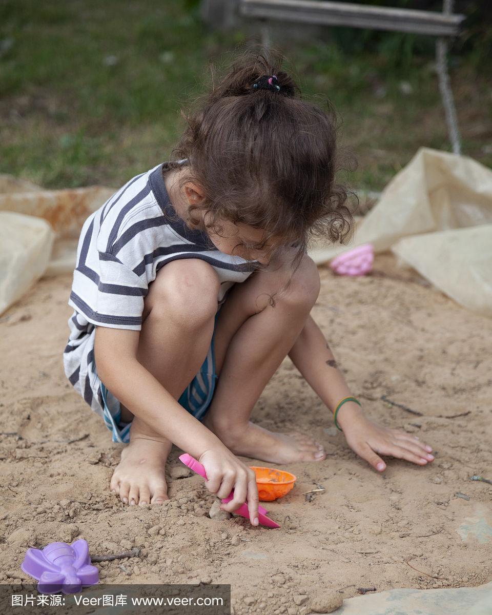 小女孩玩沙子 小朋友