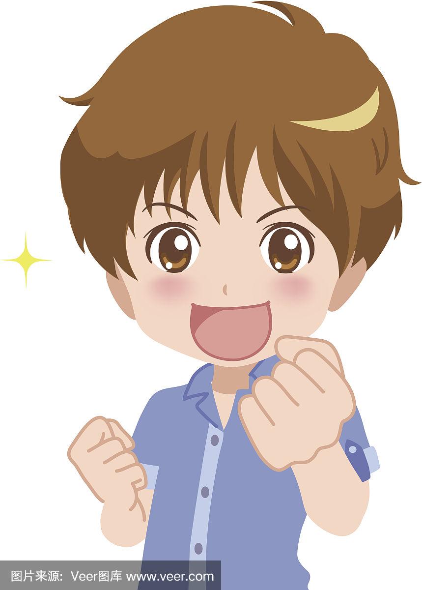 一个男孩做一个勇敢的姿势的插图