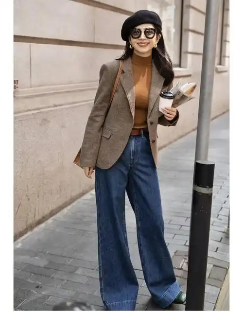 秋冬新款韩版ins复古咖啡色高腰牛仔裤女宽松显瘦阔腿直筒长裤子 - 17
