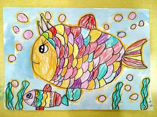 儿童油棒画图片大全:热带鱼