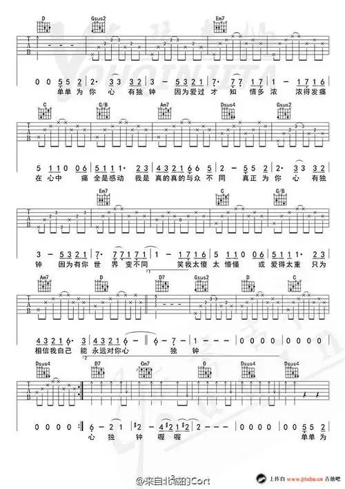心有独钟_简谱_歌谱_曲谱_吉他谱_五线谱