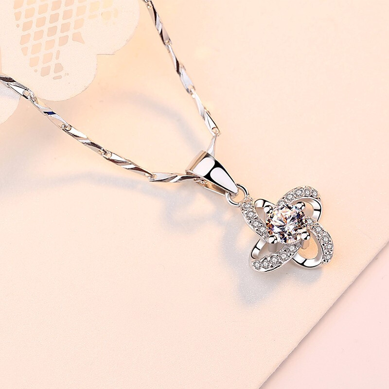 999足银项链女士时尚心形吊坠首饰品女生唯美锁骨链学生简约百搭毛衣