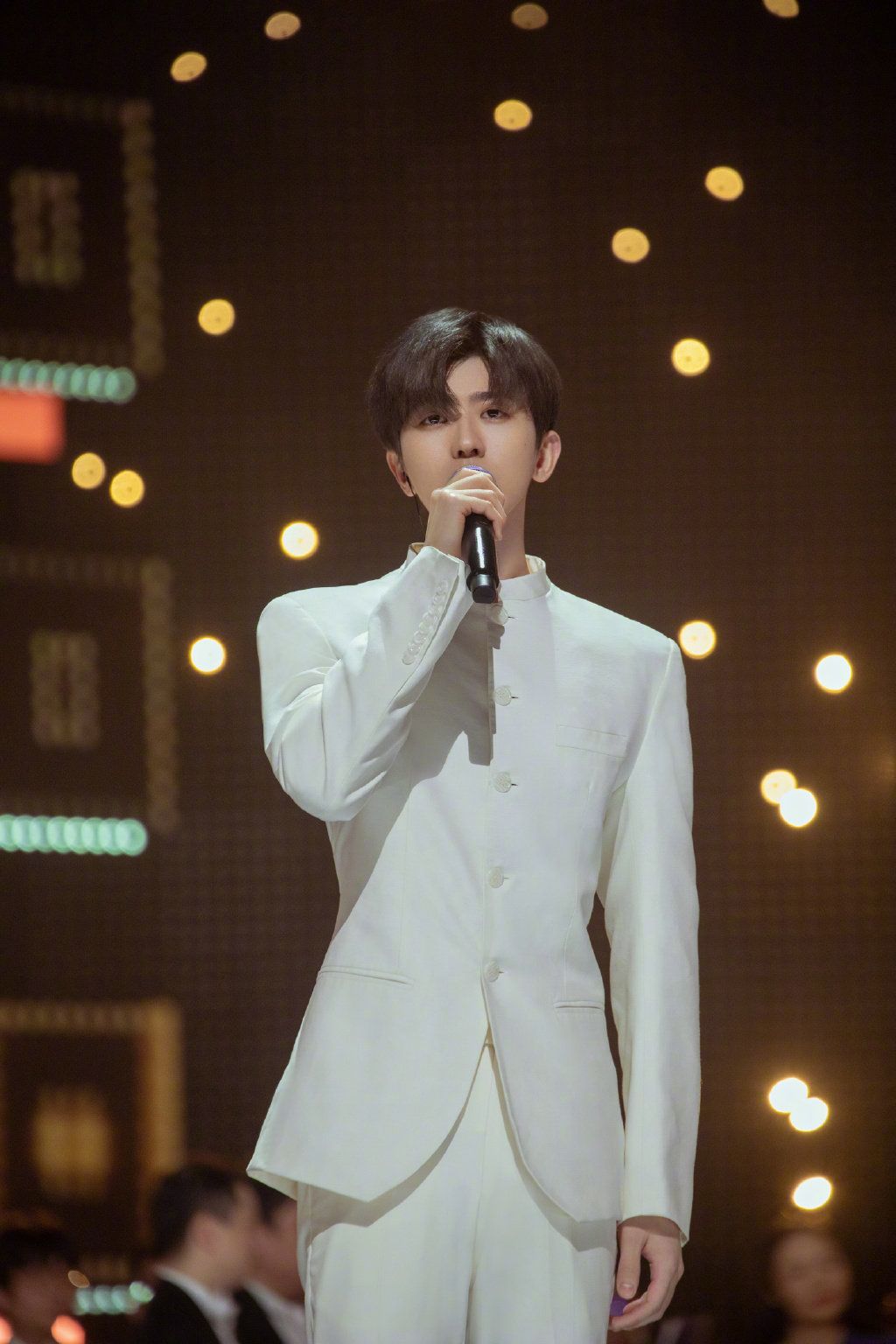 蔡徐坤穿着mans 2021春夏白色系立领西装