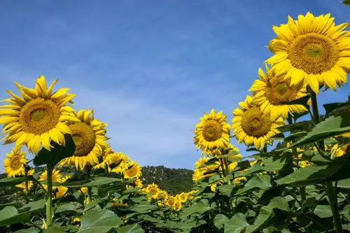又是一个艳阳高照的好天气,向日葵列队欢迎我们来到龙巴沟探险.