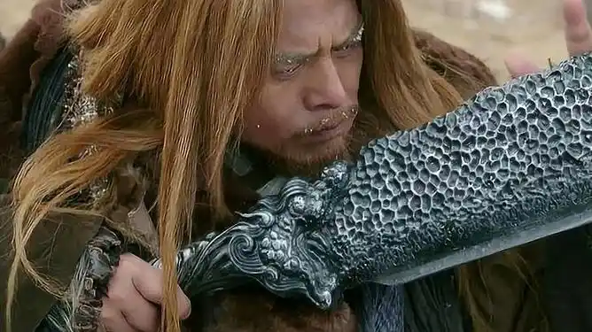 金毛狮王一个劲的抚摸屠龙刀貌似发现了什么