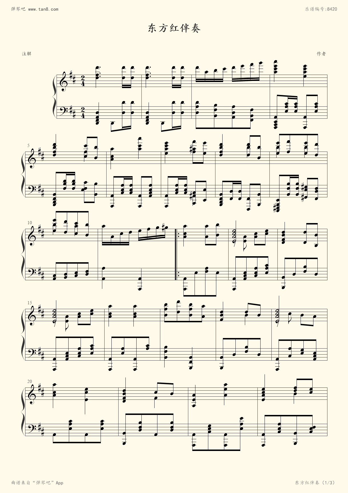 东方红-伴奏谱五线谱预览1-钢琴谱文件(五线谱,双手简谱,数字谱,midi