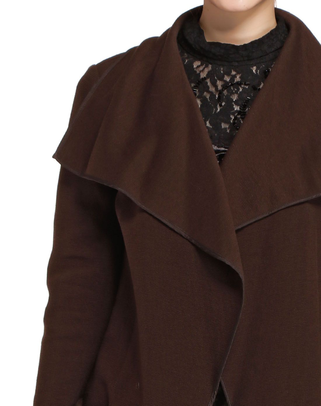 深咖啡色时尚优雅田园风撞色布艺拼接九分袖毛衣