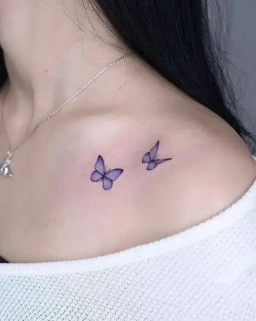 女生锁骨处的小清新纹身图案