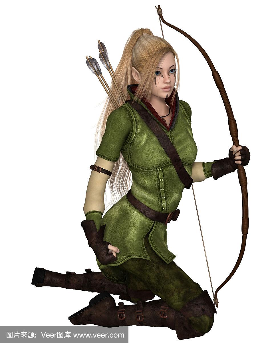 金发女精灵弓箭手,跪