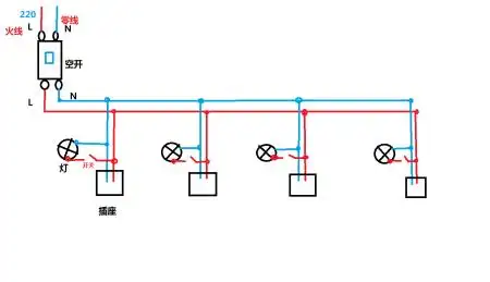 两并联灯泡与一个开关串联,然后接在火线上,日光灯的另一端直接接在