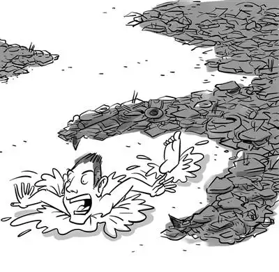 在垃圾的海洋里痛苦挣扎.