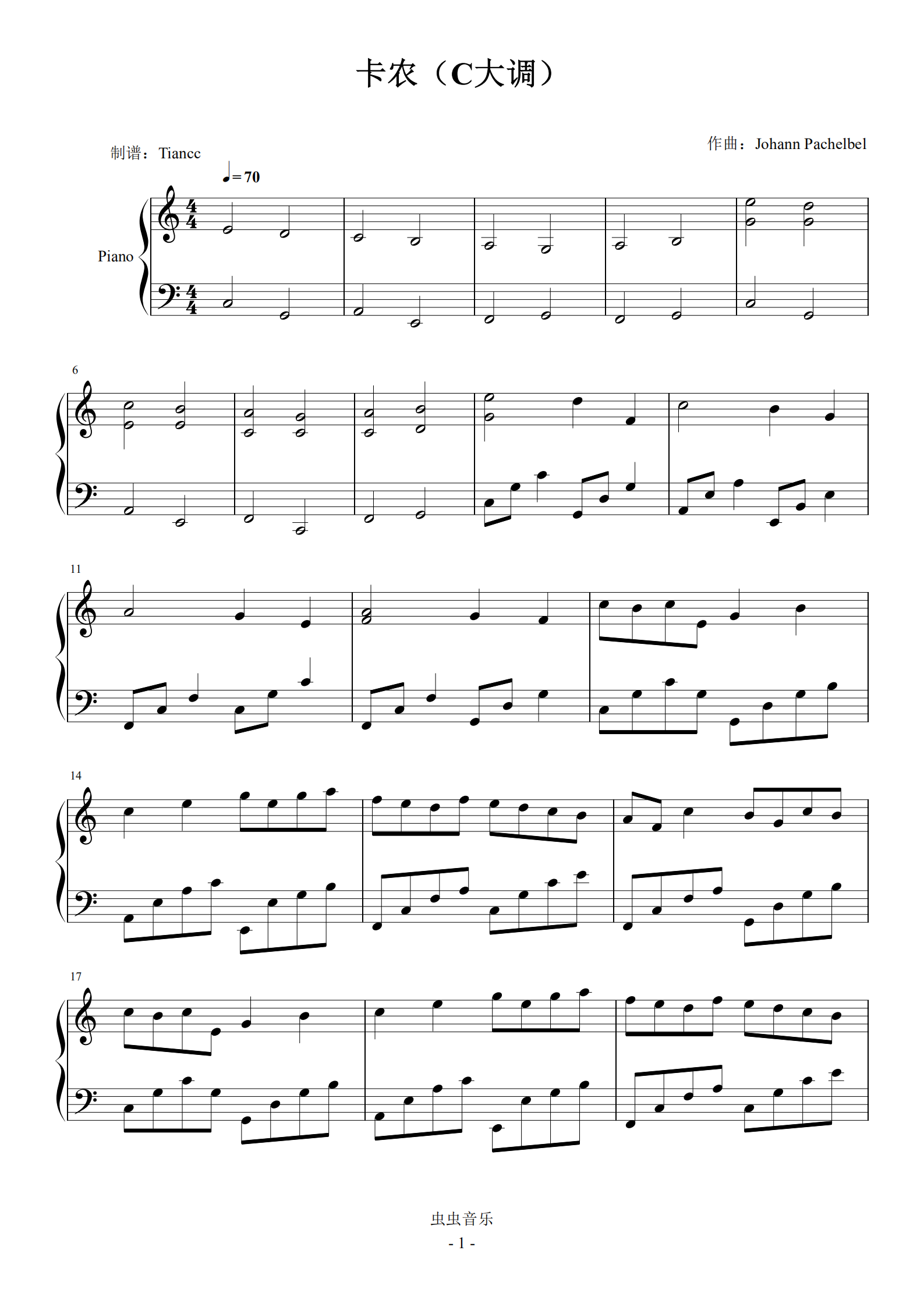 《卡农c大调》完美可弹优化版,599学完难度钢琴谱-虫虫钢琴