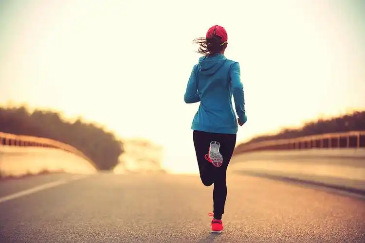 夕阳落日跑步的女人公园野外草原草地草坪励志奋斗运动健身户外跑步