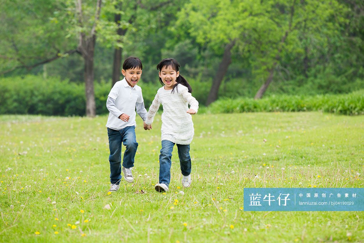 儿童在公园奔跑